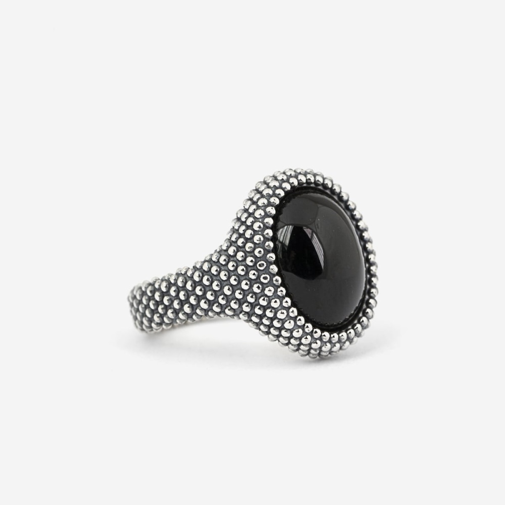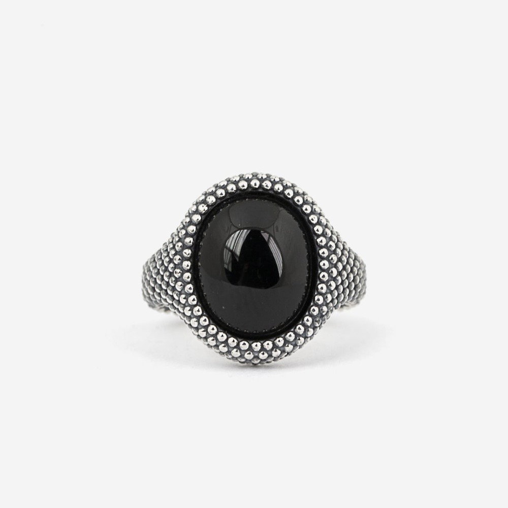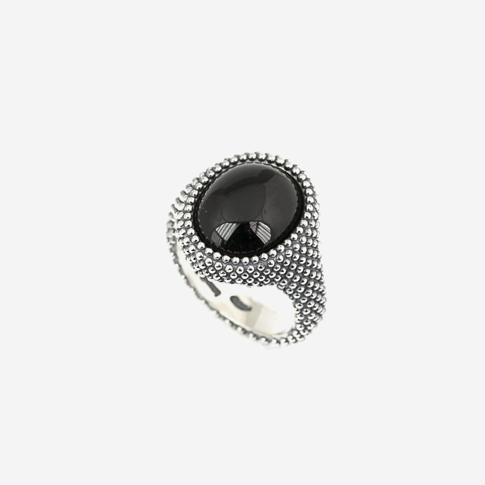 ANELLO CHEVALIER OVALE PUNTINATO CON PIETRA ONICE