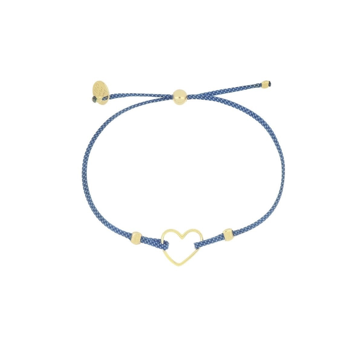 Bracciale di filo di nylon blue jeans con cuore traforato realizzata in argento 925 placcato in oro giallo ad alto spessore ed alta resistenza.