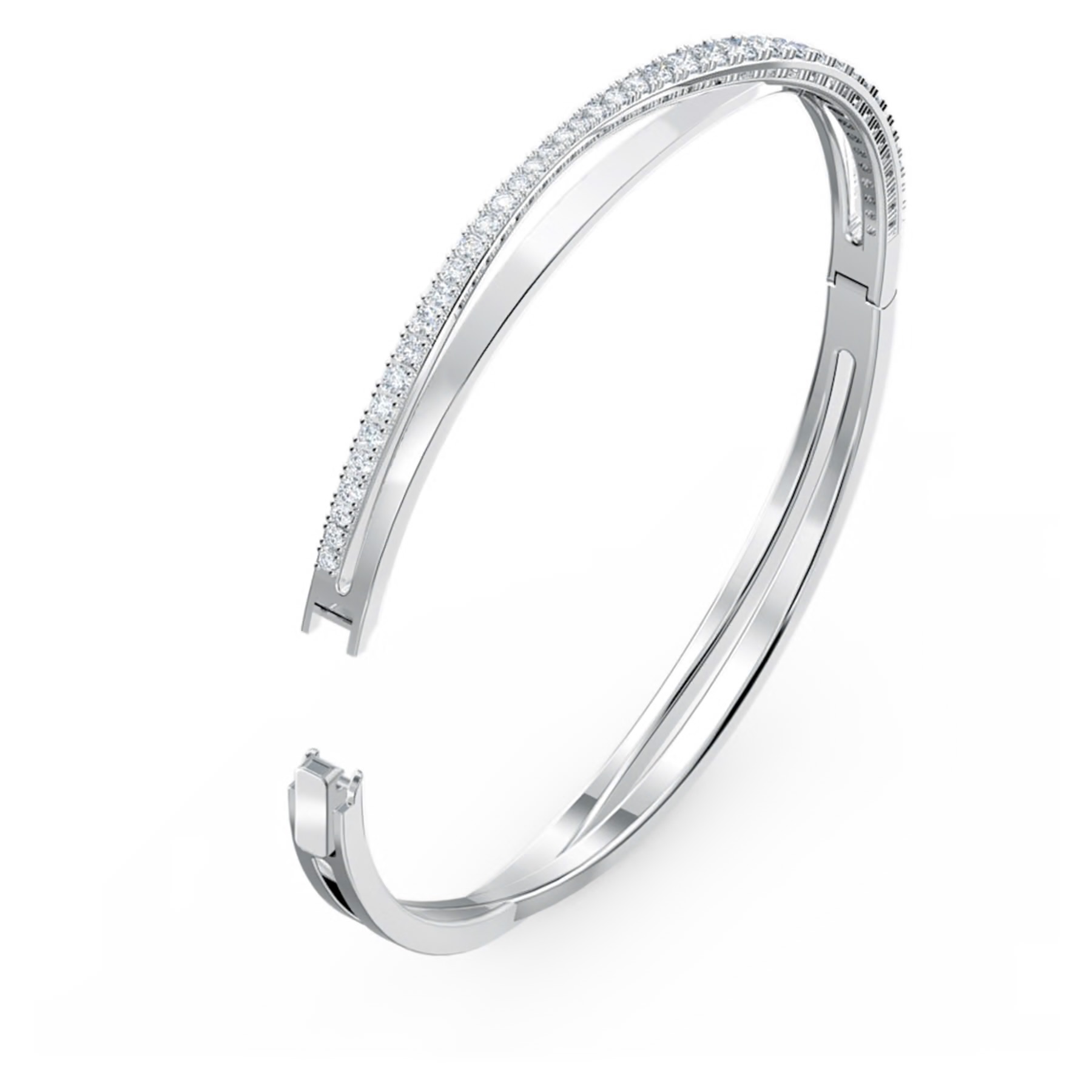 Questo splendido bangle Swarovski sfoggia un’eleganza intramontabile e discreta in una moderna interpretazione del trend delle spirali. Una brillante linea di pietre bianche scintillanti segue il delicato profilo curvo del bangle, aggiungendo radiosità al design. Trendy e raffinato, questo bangle completa i tuoi look da tutti i giorni con un tocco brillante.