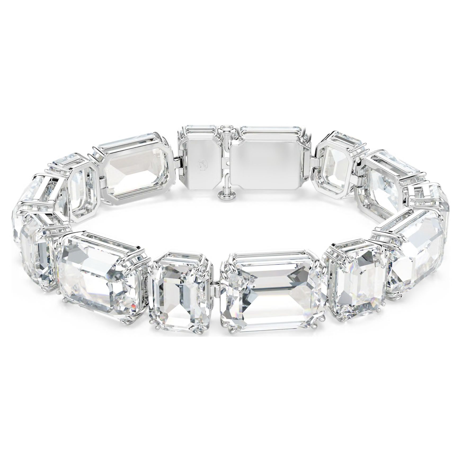 Abbraccia il potere della semplicità con questo straordinario bracciale Millenia. Il design placcato rodio è impreziosito da cristalli Cry taglio Octagon, disposti alternativamente in orizzontale e verticale. Con il suo audace display di luce, il gioiello può elevare qualsiasi outfit, da giorno o da sera, e può essere abbinato alla collana coordinata per accentuarne la brillantezza.