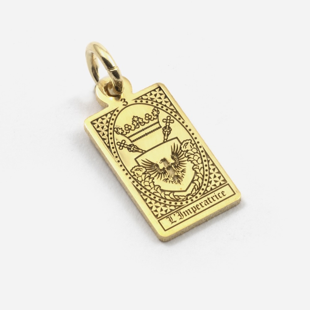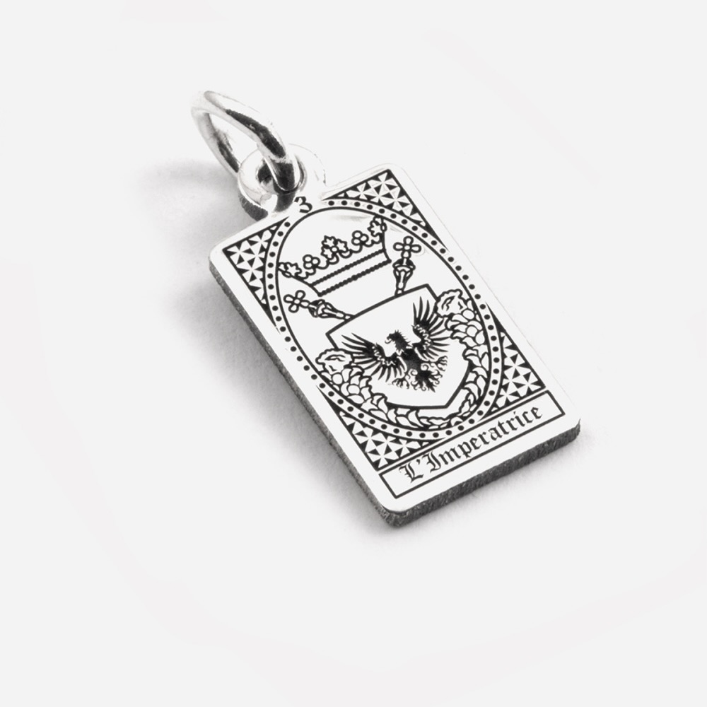 Il Ciondolo Carta Tarocchi L’Imperatrice fa parte della Collezione Tarocchi ed è realizzato in Argento 925. Come tutti i gioielli Nove25 anche questo Ciondolo viene progettato e lavorato in Italia mediante l’utilizzo delle più moderne tecnologie e rifinito a mano per garantirne il massimo dettaglio e la più elevata qualità. Questo gioiello viene proposto con una finitura Brunito Lucido o Oro Giallo Lucido.