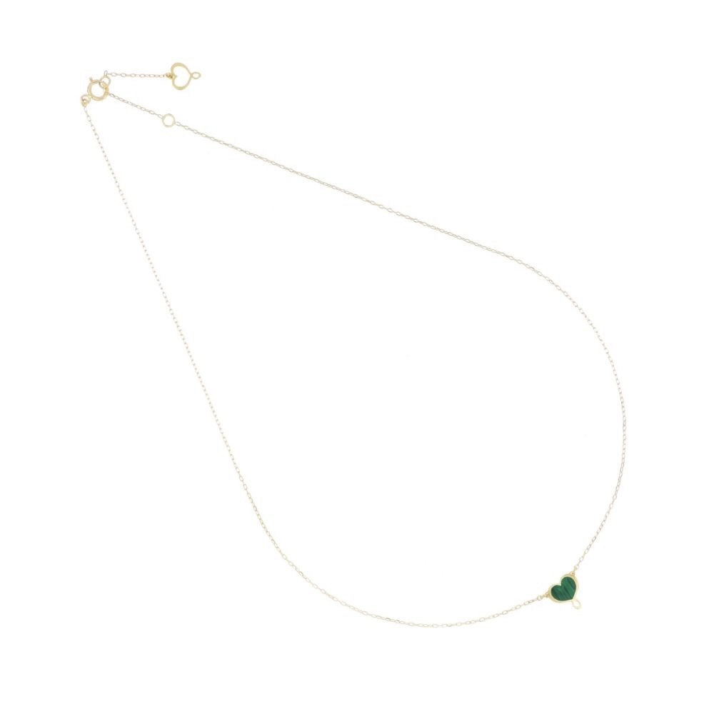 Girocollo con cuore maman in lastra di malachite centrale realizzato in oro giallo 18 carati.