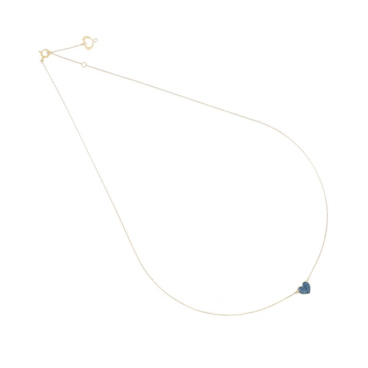 Girocollo con cuore centrale in polvere di diamanti blu realizzato in oro giallo 18 carati.