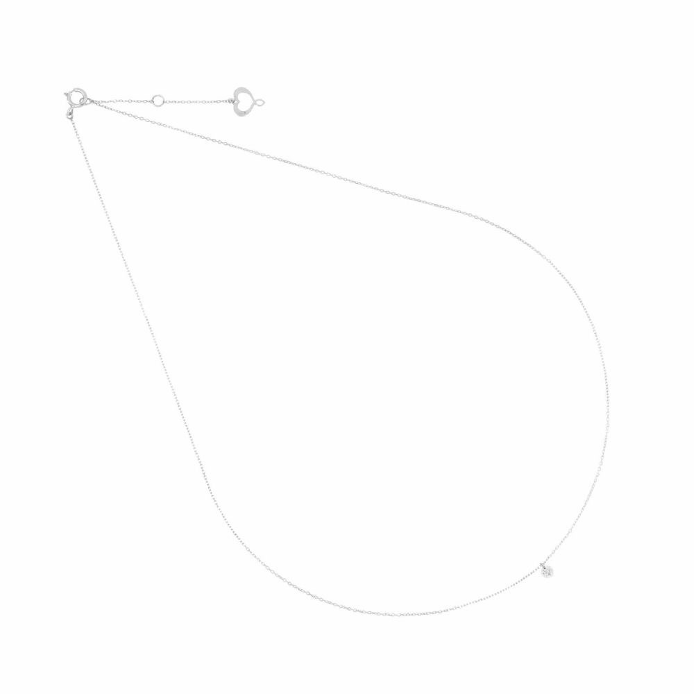 Il girocollo presenta un diamante taglio brillante pendente di 0,07 carati sospeso nel vuoto.