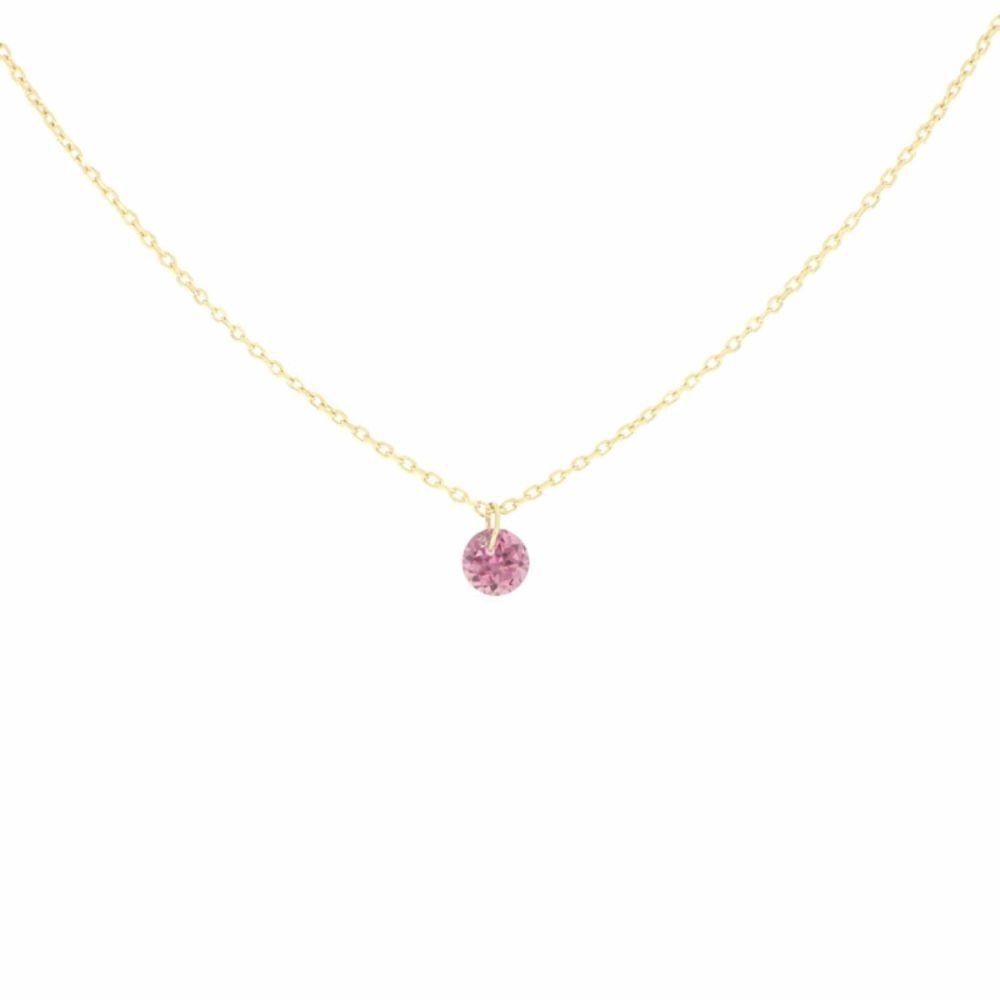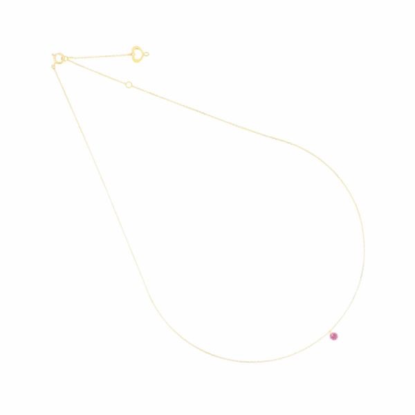 Il girocollo presenta una pietra di rodolite pendente sospesa nel vuoto.