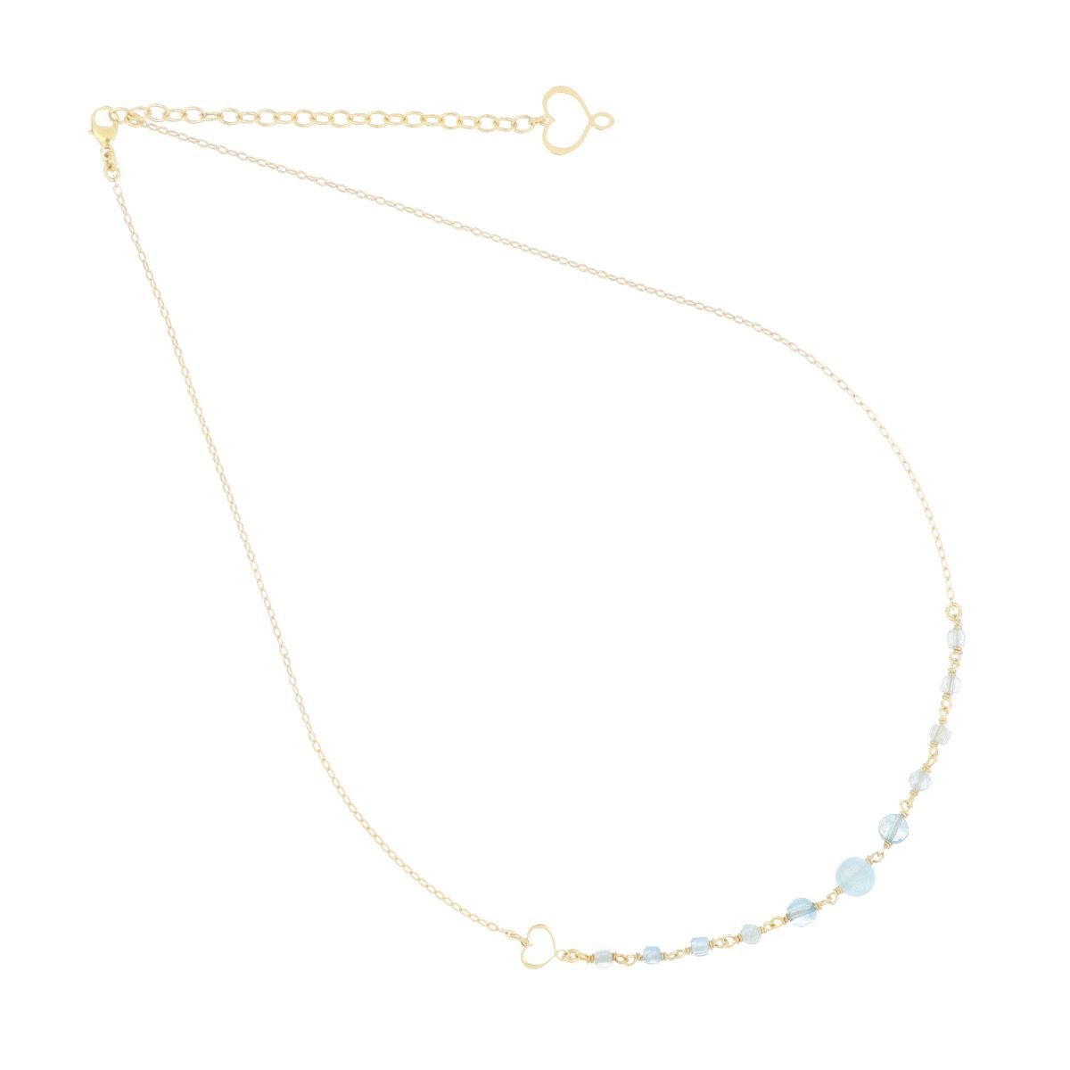 Girocollo in argento 925 con galvanica oro giallo ad alto spessore e ad alta resistenza. Il girocollo presenta pietre di acquamarina in diverse dimensioni.