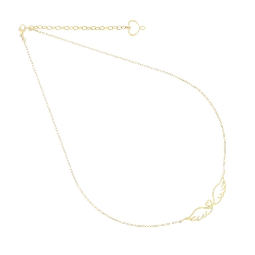 Girocollo in argento 925 con galvanica oro giallo ad alto spessore e ad alta resistenza. Il Girocollo presenta il disegno di due ali di lunghezza 40mm.