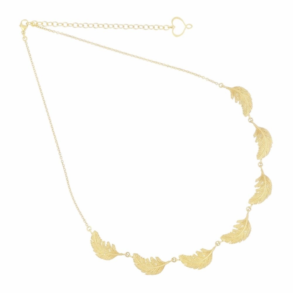 Girocollo in argento 925 con galvanica oro giallo ad alto spessore e ad alta resistenza. Il Girocollo presenta sette piume di lunghezza 20mm.
