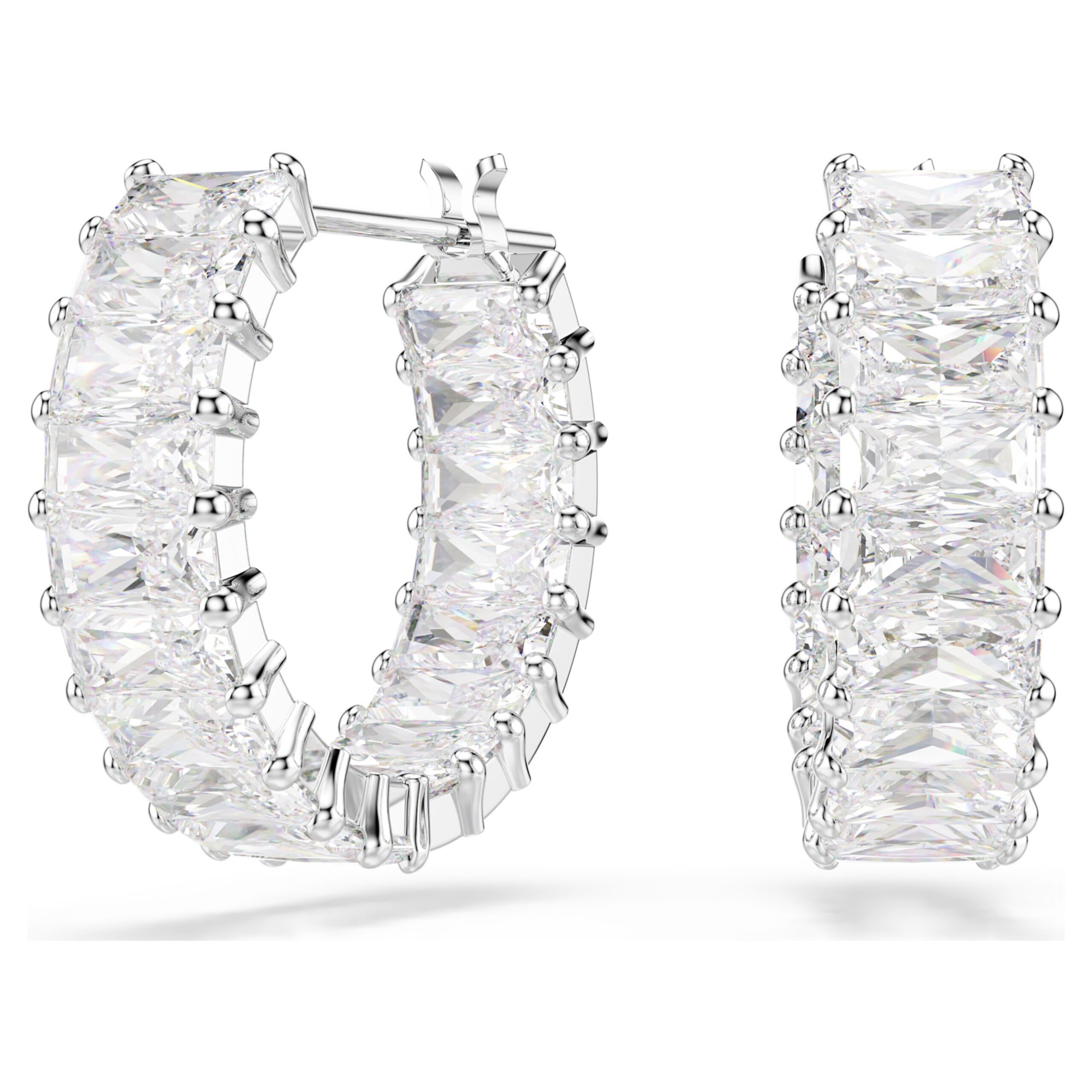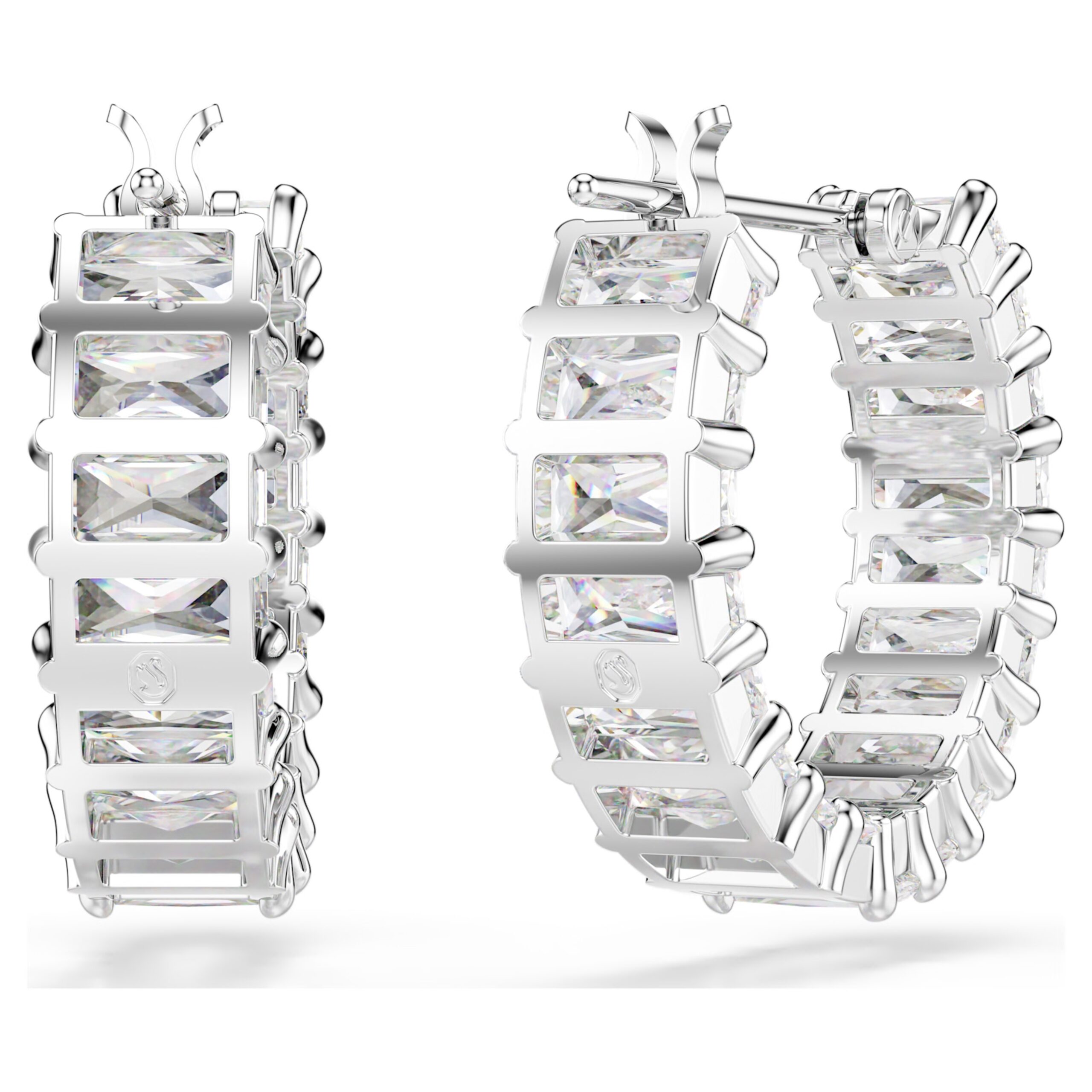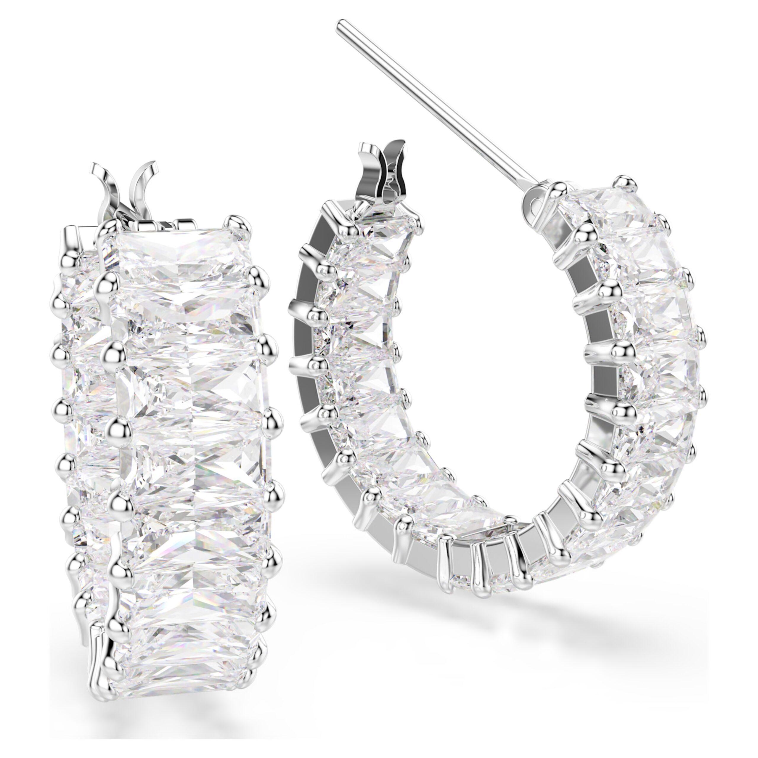 Reinventa il tuo stile con i mini cerchi con questo brillante tocco di luce firmato Matrix. Ogni orecchino placcato rodio è decorato da Swarovski Zirconia taglio Baguette con montatura a griffe, che aggiungono un alone di radiosità a qualsiasi outfit. Abbinali a una collana Matrix per una luminosità a 360 gradi.