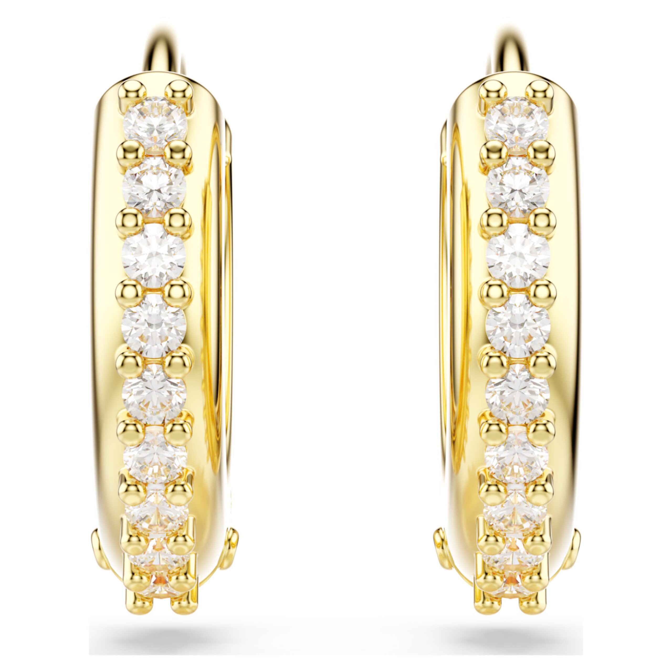 Ravviva il tuo stile con questi sfavillanti mini cerchi. Placcati in tonalità oro, questi orecchini a buco sono impreziositi da Swarovski Zirconia trasparenti montate a griffe sulla parte esterna. Un modo disinvolto per infondere al tuo look immediata radiosità.