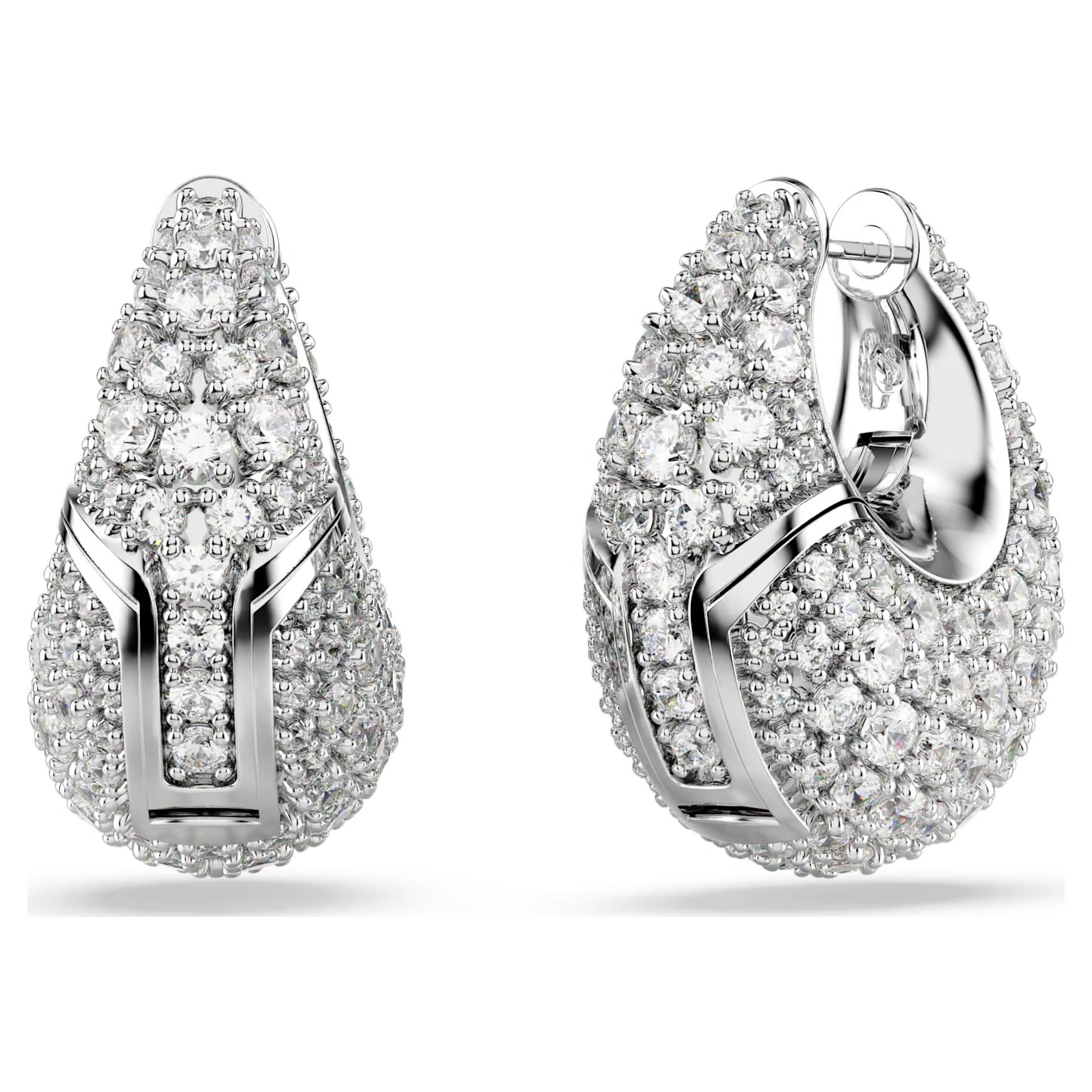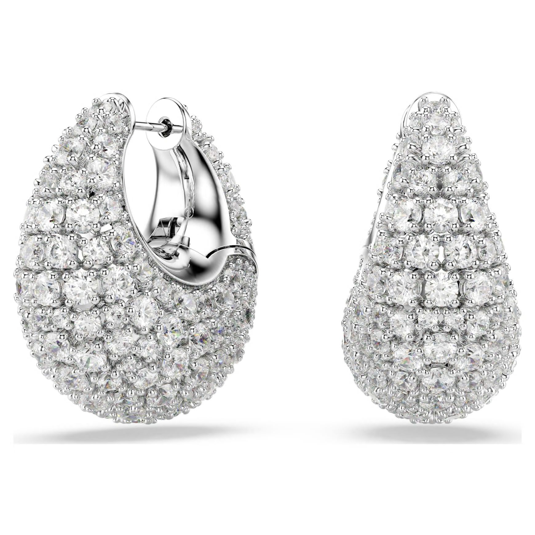 Realizzati nella forma di due scintillanti gocce, questi grandi orecchini sono una scelta glamour per lo stile personale. Ciascuna silhouette placcata rodio presenta una splendida decorazione di Swarovski Zirconia trasparenti, incastonate con la tecnica chatonnage. Un ulteriore meccanismo a molla rende questi orecchini particolarmente facili da indossare. Abbinali a uno splendido pendente Sublima o a un anello per infondere luce a tutto il tuo look.