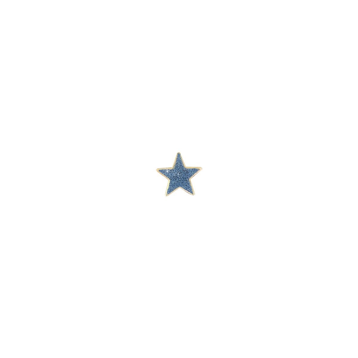Orecchino singolo in oro giallo 18 carati con stella di dimensioni 7×7 mm. La stella presenta sulla superficie polvere di diamanti blu e bordo in oro.