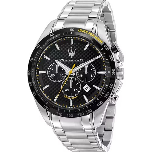 OROLOGIO MASERATI TRAGUARDO – R8873612042 – Genere: Uomo, Materiale e finitura cassa: Acciaio, Misura cassa: 45mm, Spessore cassa: 12,00, Finitura cassa: Satinato, Colore cassa: Nero, Vetro: Vetro minerale, Materiale cinturino: Metallo, Colore cinturino: Silver, Chiusura: Fibbia box con pulsanti, Water resistant: 10 atm, Garanzia: Ufficiale 2 anni Maserati, Confezione: Originale Maserat