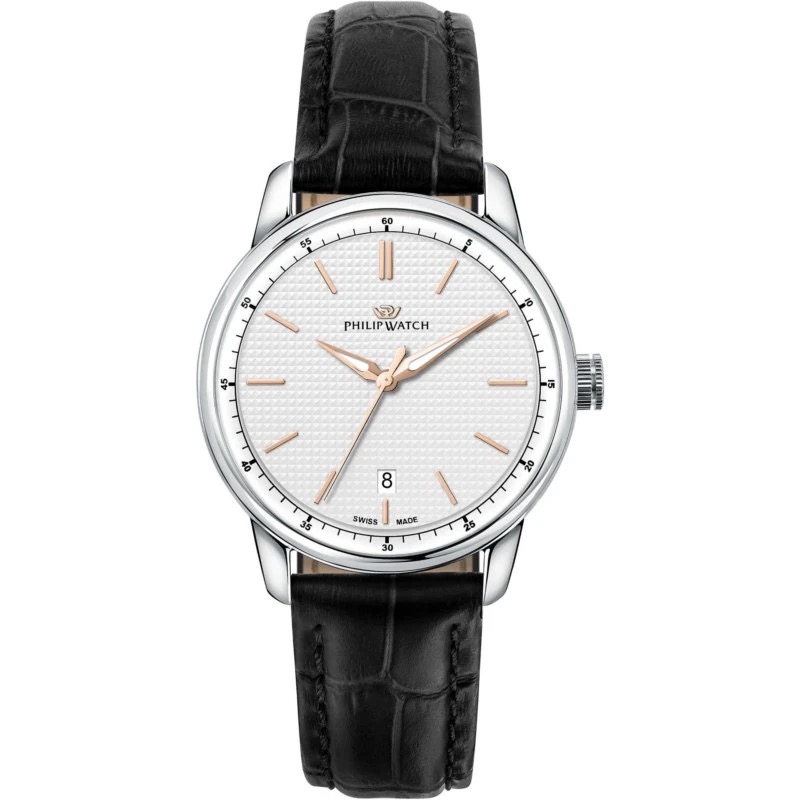 Orologio uomo philip watch, collezione anniversary, movimento al quarzo, solo tempo, cassa in acciaio 40mm, quadrante bianco con datario, cinturino in pelle, resistenza all’acqua 10atm