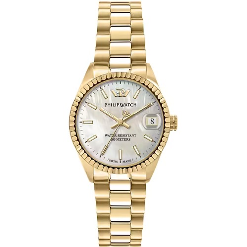 Orologio Philip Watch Caribe – R8253597610 – Philip Watch experience: Lady, Genere : Donna, Materiale e finitura cassa: Acciaio, Misura cassa: 31mm, Spessore cassa: 9,15, Finitura cassa: Satinato, Colore cassa: Gold, Vetro: Vetro zaffiro antiriflesso, Materiale cinturino: Bracciale in metallo, Colore cinturino: Oro, Chiusura: Fibbia a farfalla, Movimento: Quarzo, Swiss made: Sì, Water resistant: 10 atm, Garanzia: Ufficiale 2 anni Philip Watch, Confezione: Originale Philip Watc