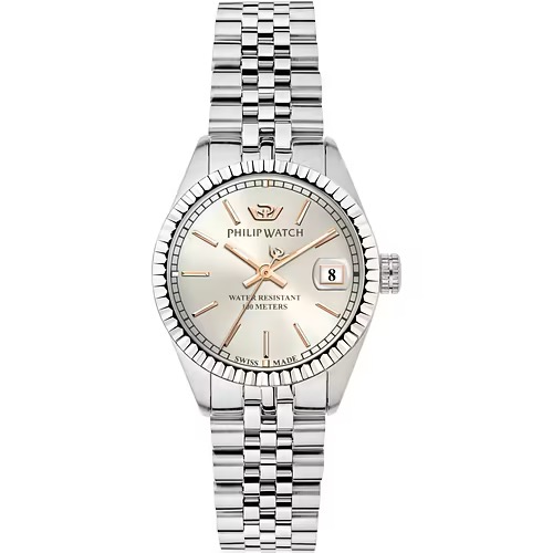 Orologio Philip Watch Caribe –  – Philip Watch experience: Lady, Genere : Donna, Materiale e finitura cassa: Acciaio, Misura cassa: 39×31.3mm, Spessore cassa: 9.15, Colore cassa: Silver, Vetro: Trattamento vetro zaffiro, Materiale cinturino: Bracciale in metallo, Colore cinturino: Argento, Chiusura: Fibbia deployment con sicurezza a spinta laterale, Movimento: Quarzo, Garanzia: Ufficiale 2 anni Philip Watch, Confezione: Originale Philip Watc